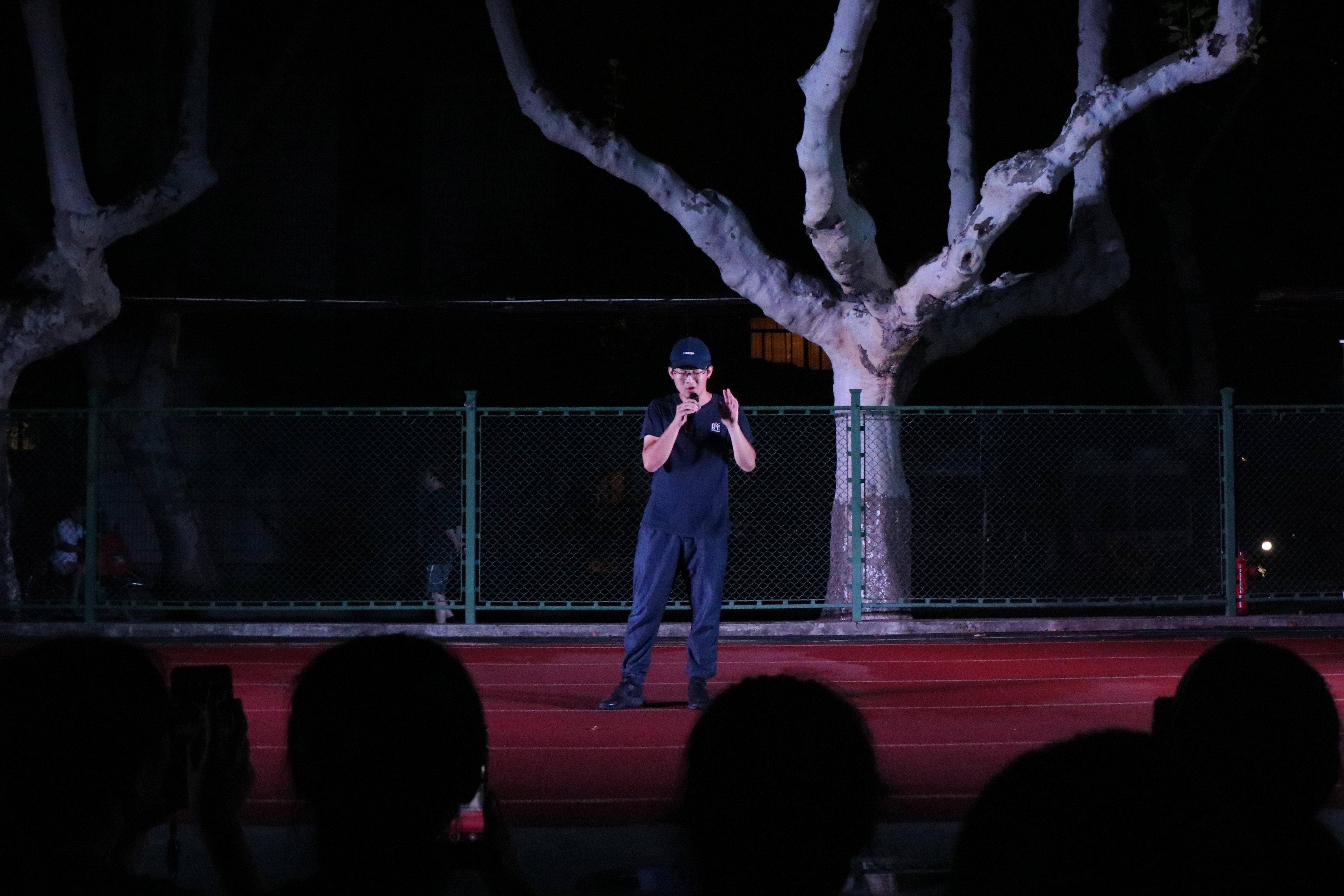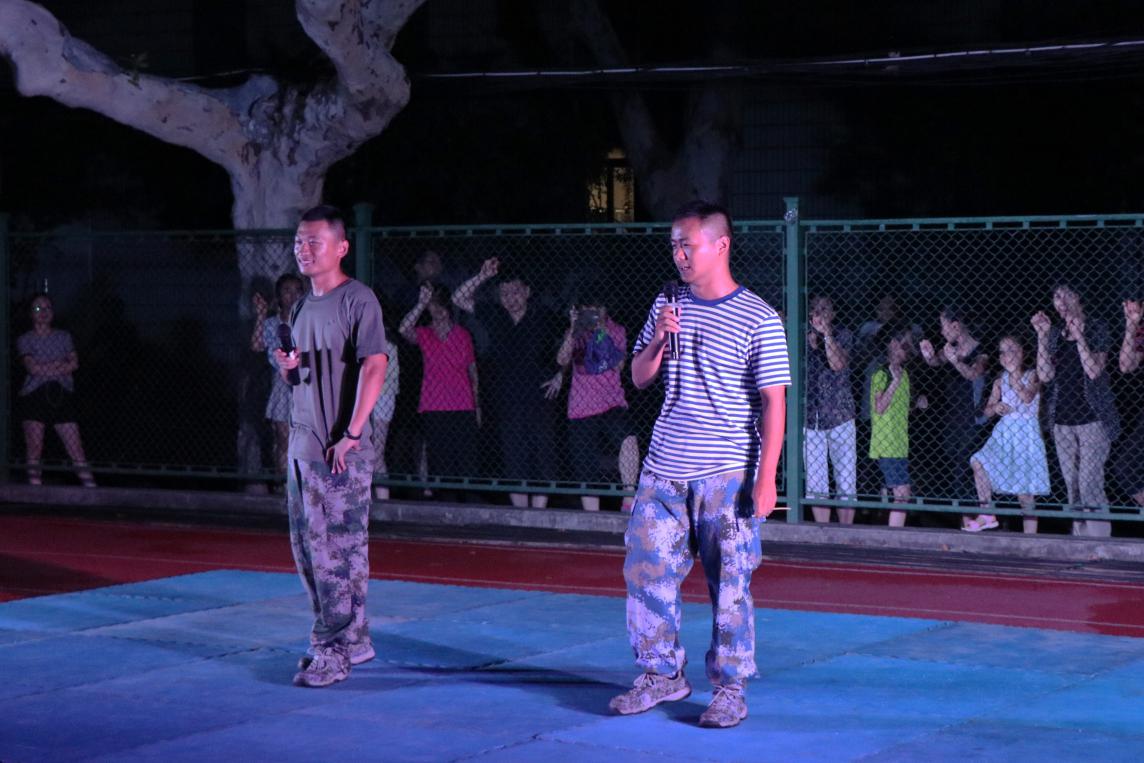 8月31日晚上,正在军训中的大一小萌新们和教官一起在榴园操场度过了愉快的一晚。“天公作美”,下午的一场雨打破了“你若军训,便是晴天”的魔咒,给小可爱们带来了清凉。雨后四牌楼的夜晚一改白天训练时的闷热难耐,空气湿润清新,带着丝丝凉意。萌新主持人即使有些羞涩,依然勇敢地站到台前。