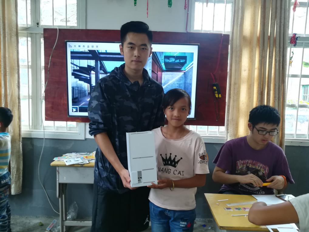 支教活动从理论和实践两个方面进行,考虑到山区孩子们的兴趣与接受能力,理论课以图片居多,以直观的方式进行少儿的美学启蒙教育;实践课将大师作品和图书室改造相结合,通过实践课程,向小朋友讲解尺度以及比例等基础知识,在此基础之上进行图书室的设计和模型的制作。最终教学成果也十分喜人,小小的模型承载着小朋友们满满的创意,经过多次打磨的最终模型也放入图书室中,作为纪念保存。