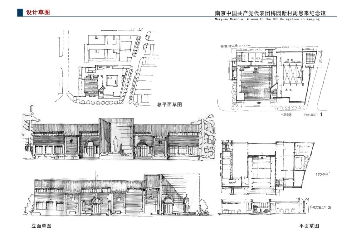 接到委托,与南京市建筑设计院合作,承担中国共产党代表团梅园新村纪念馆设计工作。由齐康院士带队,许以立、孟建民、曹斌、仲德崑共同参与设计。项目于1991年建成,工程规模2400平方米。纪念馆通过与周围建筑环境的和谐,使历史环境中的事迹得到建筑艺术上的再现,肃穆静思的氛围呈现出特定的历史意义。从内庭院到展厅,再下到梅园新村30号周恩来同志故居,全馆1170件珍贵文史资料,生动展现了老一辈无产阶级革命家的崇高精神和革命风范,突出反映了老一辈无产阶级革命家的革命业绩。透过一页页鲜见的文献档案,一帧帧珍贵历史图片,可以直观地感受到中国共产党人不忘初心、坚守信仰、永远奋斗的精神风貌。