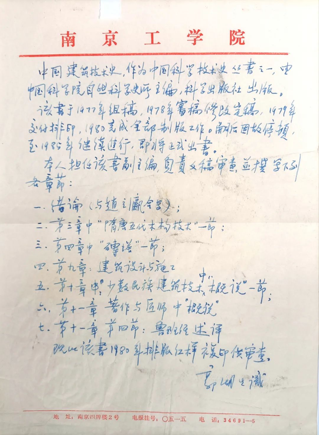 1979年编成中国科学院自然科学史所主持的《中国科学技术史丛书》之一的《中国古代建筑技术史》(科学出版社,1985年),担任主持文稿审改修改的第一副主任编审,并撰写该书多个章节。参加中国科学技术史学会,为第一届理事。国际东亚自然科学史、技术史、医学史学会会员。1981年在《科技史文集》第7辑上发表《鲁班经与鲁班营造正式》。1983年,参加日本东京和京都举行的三十一届亚洲北非人文科学会议,作《中国古代城市水工设施》学术报告。应邀参加一九八七年日本京都国际中国科学史讨论会,作《中国古代工程测量技术》报告。