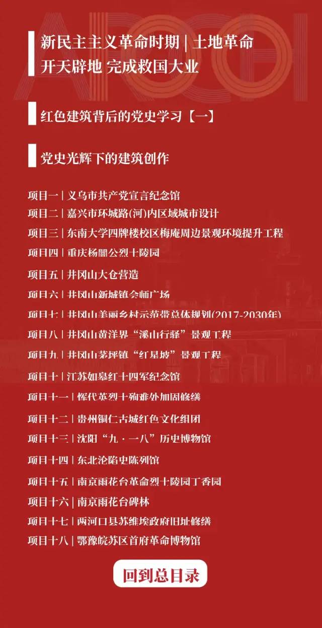 展馆每章分设“红色建筑背后的党史学习”和“党史光辉下的建筑创作”两部分。“红色建筑背后的党史学习”简述了该历史阶段的重大事件和党的发展历程;“党史光辉下的建筑创作”则收录了与该时期党史相关的东大建筑设计作品。