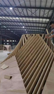 3-5m标高双曲面壳体构件的模板通过直线肋板找形