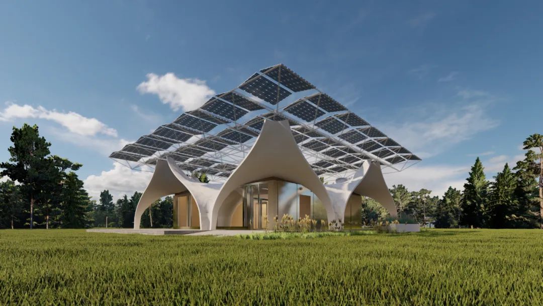 Solar Ark 3.0的屋顶形式源于一种光滑复合双曲面(smooth poly-hyper surface),它不仅在形式上拟合了最优受力模型,减少了材料用量,而且可以通过直线生成复杂的造型,这对于曲面壳体的精准找形、快速生产以及后续的安装定位都有所助力。