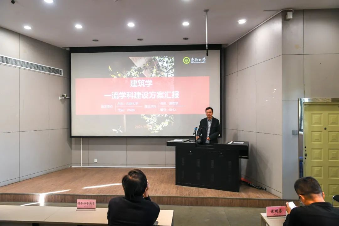 建筑系系主任朱雷,城市规划系系主任陈晓东,景观学系系主任成玉宁依次汇报了建筑学、城乡规划学、风景园林学一流学科建设方案。