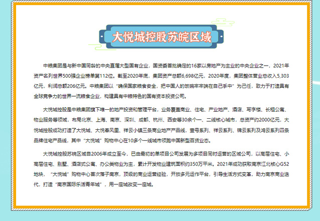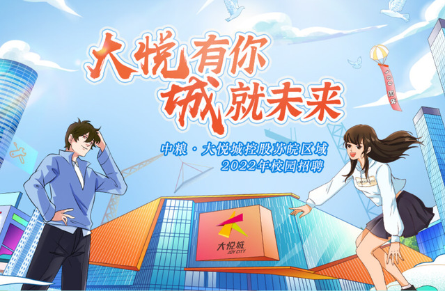 大悦有你,成就未来 — 中粮·大悦城控股苏皖区域2022届校园招聘火热启动!央企担当,实力不凡!商业管理、市场营销、规划设计、财务行政等多个岗位等你挑选,投递链接://campus.51job.com/grandjoynj2022。