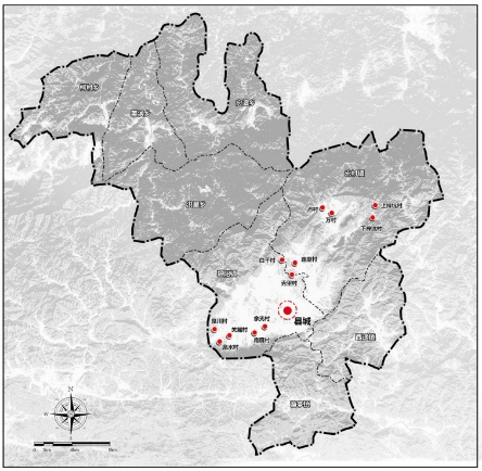 宏观基因:八山半水,一村半田,山水夹峙,枝状扩散;聚集而居,择低而居,择平而居,亲水分布。