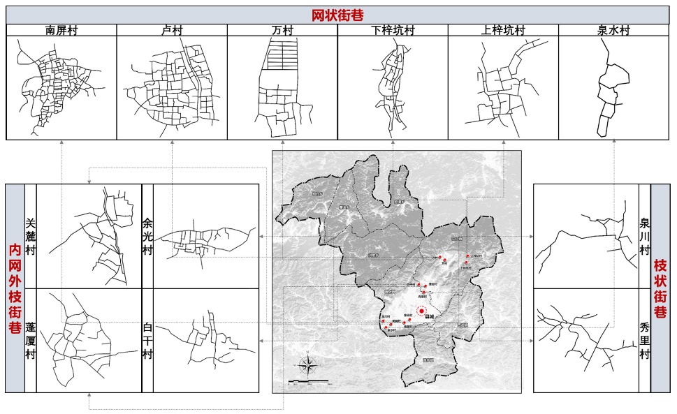 图:中观空间徽州特色村镇典型模式图