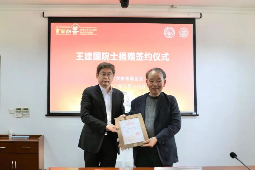仪式上,王建国院士与黄大卫副校长签署捐赠协议,王院士向黄大卫副校长递交捐赠纪念牌,黄大卫副校长向王院士颁发捐赠证书。仪式后老师们进行了亲切交流。