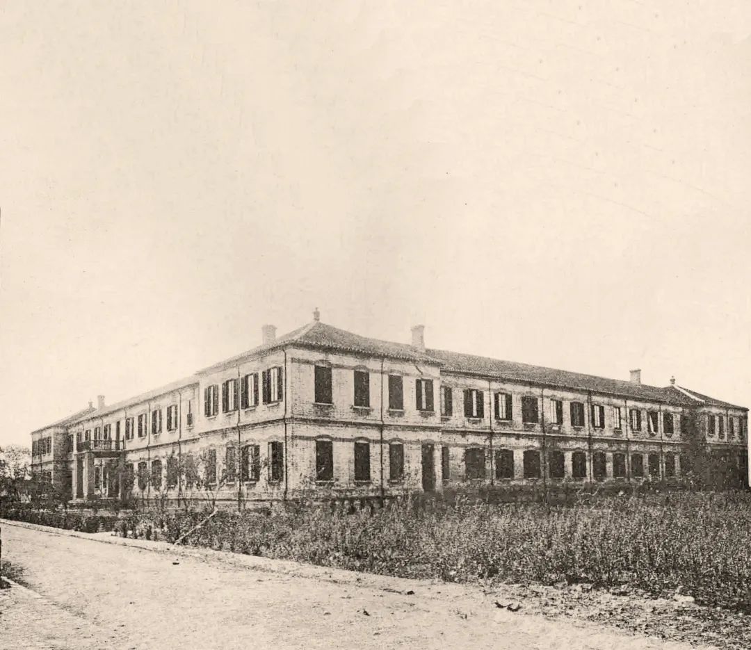 ▲一字房(1904 年建教学 / 办公主楼,中央大学时期更名南高院,1963 年拆除新建)