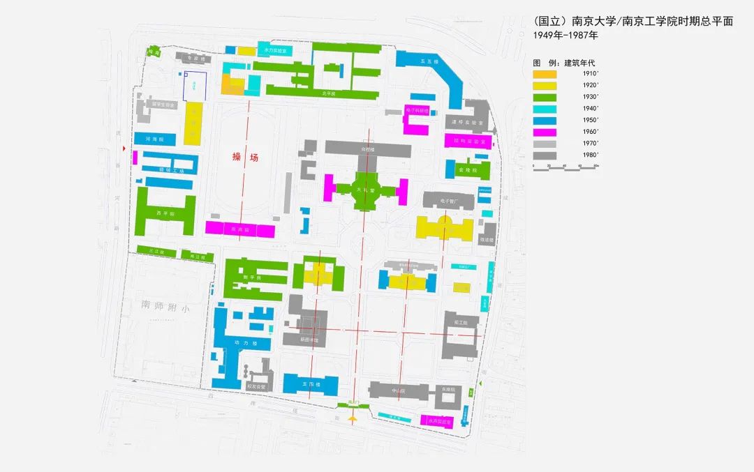 ▲(国立)南京大学/南京工学院时期总平面图(1949 年- 1987 年)