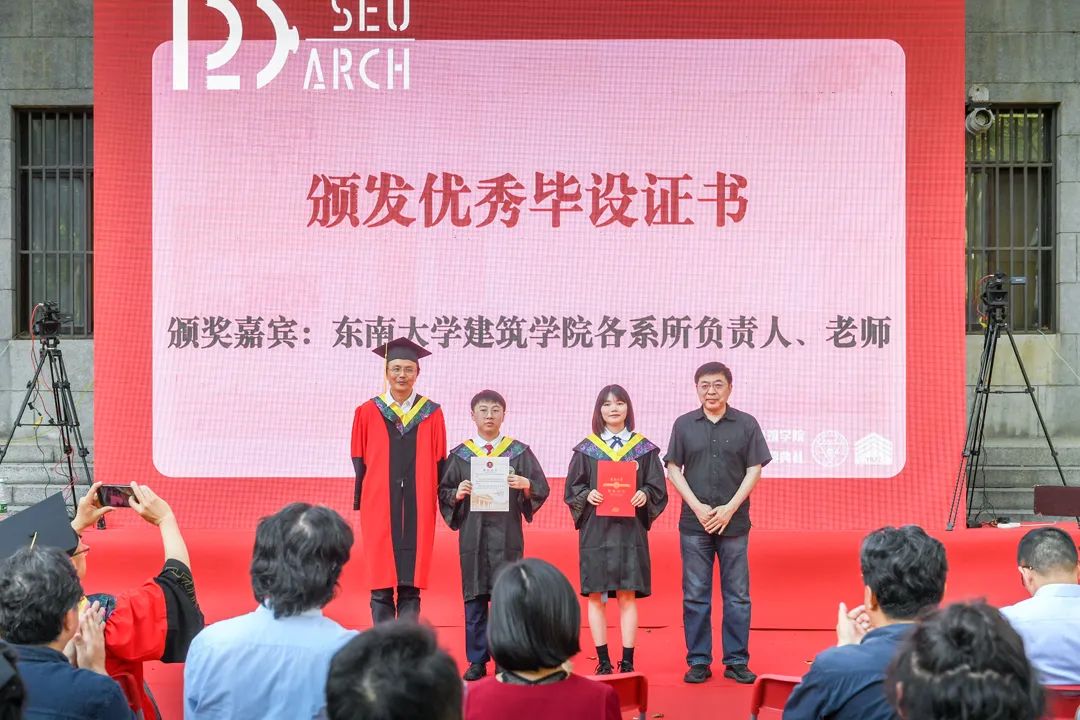 随后,本科与研究生毕业生代表郎蕾洁同学与高亦超同学分别发言,在回顾学院生活的美好之余,也表达了对学院、对老师的感谢与对未来的憧憬与展望。郎蕾洁同学细数五年建院生活中的大事小事,唤起了同学们的深深共鸣。身处时代洪流之中,她祝愿同学们仍能听从内心的召唤,永远是肩上飞扬有风、心似滚烫火焰的有梦少年。高亦超同学则用东大求学八年中学到的三句话与同学们共勉。“处处留心皆学问”,学子们求学时与志同道合的伙伴一路前行、共同成长,毕业后更应接过东大前辈的先锋旗帜,成为中国建筑的领军人才。