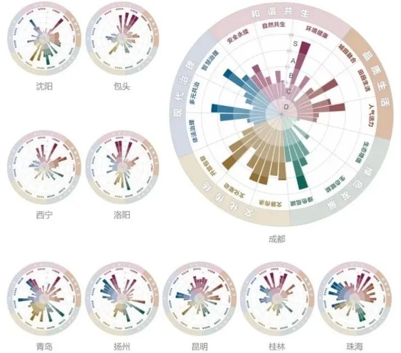 在指标体系形成的基础上,《指数》采用了“10+N”的试算方法:选取国内不同地域、不同区位、不同大小的10个具有典型代表的城市,包括西宁、包头、沈阳、青岛、洛阳、扬州、成都、昆明、桂林和珠海对指标进行试算,以验证指标是否具有广泛适用性;同时选取在特定指标方向表现较好的N个特殊城市,如北京、上海等,以保证指标取值的合理性。通过试算,科学客观地反映了这些城市的优势和短板,为它们进一步践行公园城市理念指出了方向。