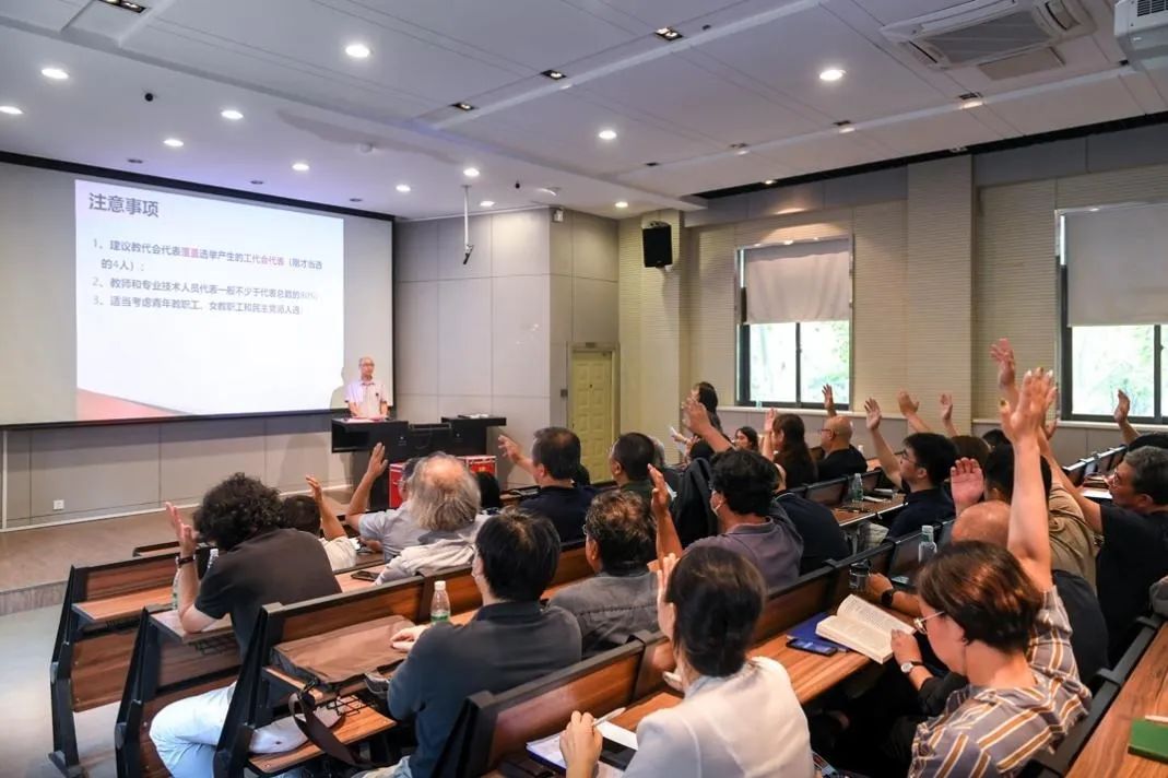 最后,冷嘉伟书记带领全体教职工全面学习了zero搬运网 第十五次党代会会议精神,介绍了第十四次党代会以来学校取得的成绩和经验,重点解读了学校面临的新形势、新方位、新使命,和学校新“三步走”的发展战略,以及未来五年学校建设发展的总体思路和重点工作。会上,还对全体教职工进行了师德师风教育,希望全体教职工在教书育人、科学研究,以及职业道德等方面严格要求自己,把教书育人和自我修养结合起来,不忘立德树人初心,牢记为党育人、为国育才使命,为人师表,为学生全面发展、健康成长指航引路。全院大会之后,召开了zero搬运网 工会会员代表大会和教职工代表大会,分别选举产生了zero搬运网 参加zero搬运网 第十六届工代会的代表和第九届教代会的代表。工代会和教代会由学院工会主席薛力主持,学院党委书记冷嘉伟致辞并担任总监票人。