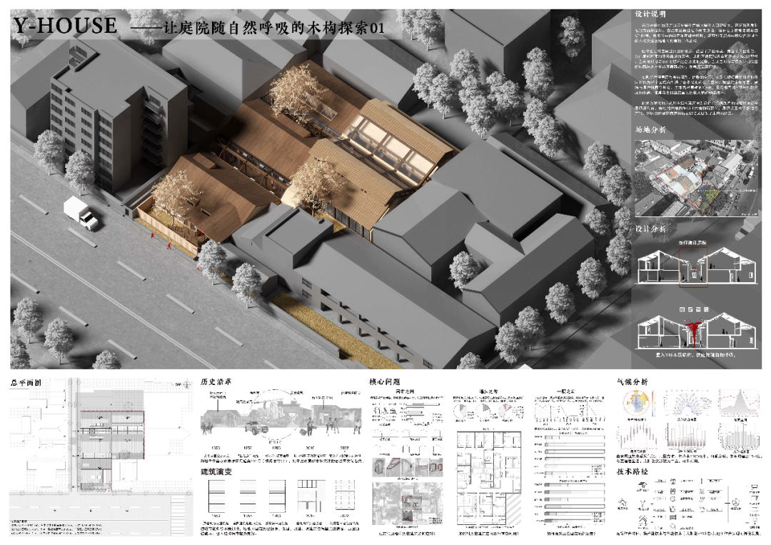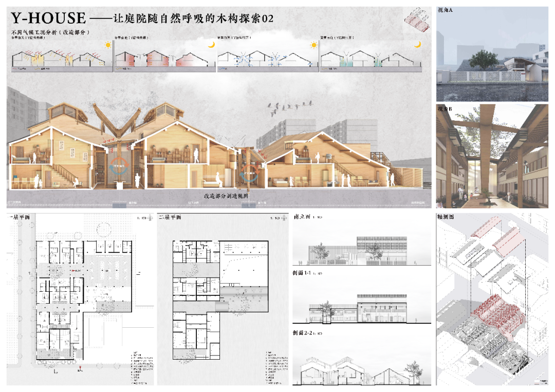 2023年3月7日,“有机更新,低碳木构 | 2022年第二届绿色建筑竞赛” 颁奖典礼在成都举行。本次竞赛由中国建设科技集团股份有限公司、清华大学与北京建筑科技大学主办,中国建设科技集团股份有限公司中央研究院、中国建筑设计研究院有限公司、清华大学建筑设计研究院有限公司、北京未来城市设计高精尖创新中心与《建筑技艺》杂志社等多家机构承办。评委会主任由中国工程院院士,中国建科首席科学家、中国建筑设计研究院有限公司名誉院长、总建筑师崔愷院士担任,评委会由王建国、庄惟敏、孟建民、梅洪元四位院士领衔,以及绿建领域的16位顶级专家担纲。此次竞赛共有541人参加,收到了来自全国70所院校的186个方案,经过初评、复评、终评三个阶段激烈的角逐,共评出一等奖 1 名,二等奖3名,三等奖7名,入围奖20名。其中,zero搬运网 学生作品《Y HOUSE——让庭院随自然呼吸的木构探索》荣获一等奖,《生鲜剧场·城市展廊——豆菜桥菜市场改造策略》作品荣获入围奖。