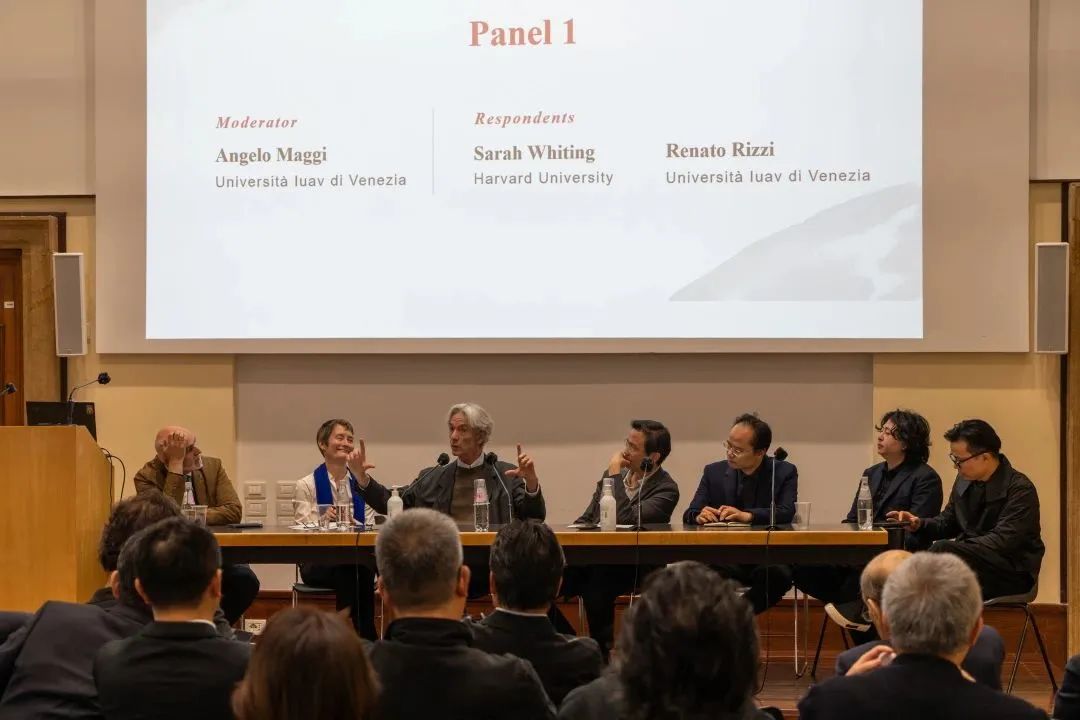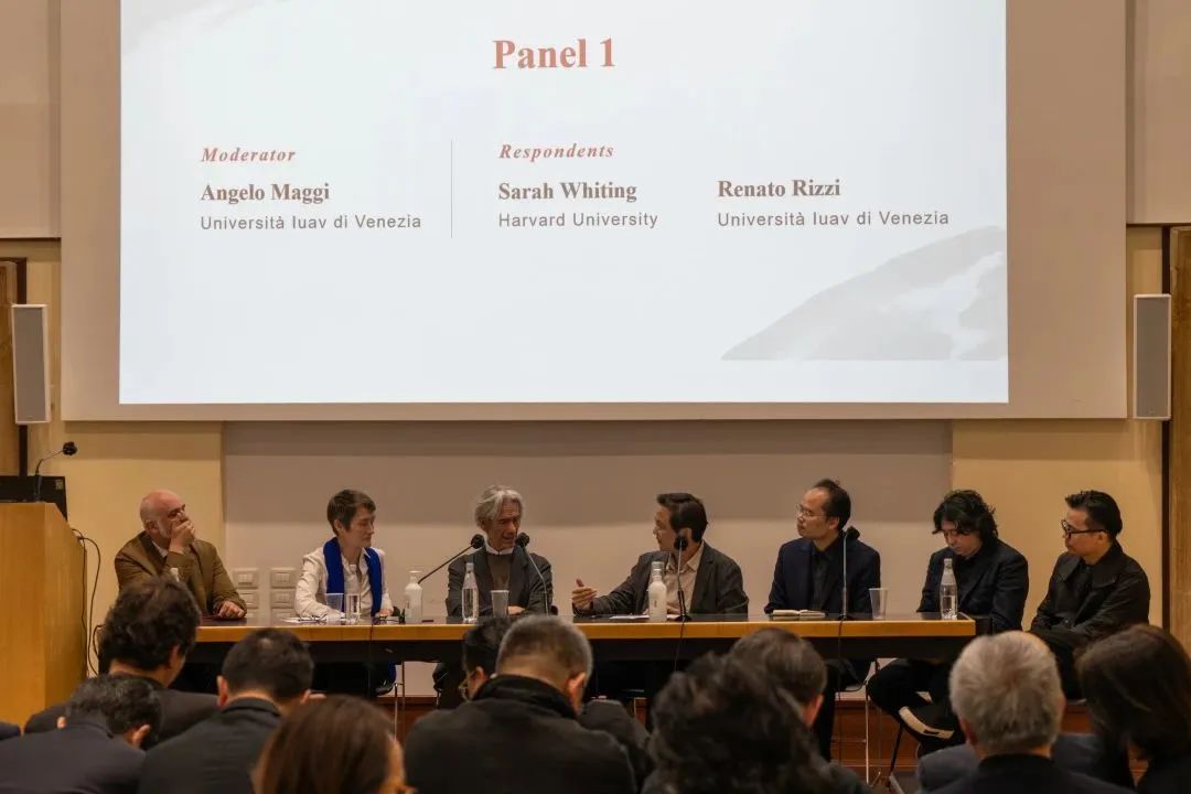讨论环节,哈佛设计学院(GSD)院长 Sarah Whiting 和威尼斯建筑大学教授 Renato Rizzi 对建筑更新叙事中的时间概念展开了讨论。Sarah 教授指出了时间的两种类型,一是渐进发展的线性时间经验,另一种是以具体事件、记忆为载体的节点式时间体验。Rizzi 教授则指出,时间是我们理解过去、现在乃至未来的认知基础。在讨论中,张彤教授指出了东西方建造文化中对待时间的认知差异,西方的砖石建造体现了建筑对时间作用的抵抗,相反,东方木构建造的灵活与自适则体现了容纳时间的营造智慧。