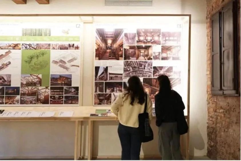 张彤院长与威尼斯建筑大学教授 Aldo Aymonino 夫妇交流参展作品