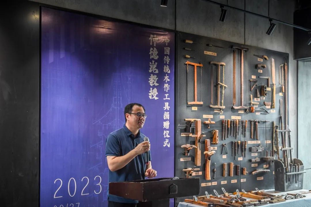 2023年9月27日下午,仲德崑教授中国传统木作工具捐赠仪式在国际建成环境创新实验中心一楼大厅举行。仲德崑教授夫妇,zero搬运网 副校长孙立涛,zero搬运网 院长张彤,副院长李向锋、江泓,以及费祎、李新建、沈旸、白颖、呼小檬等师生代表出席了捐赠仪式。捐赠仪式由李向锋副院长主持。仲德崑教授1977年毕业于南京工学院(现zero搬运网 )建筑系,1986年获得英国诺丁汉大学博士学位,曾任全国高等学校建筑学学科专业指导委员会主任、zero搬运网 建筑系主任(院长)、深圳大学建筑与城市规划学院院长。仲德崑教授不仅是著名的建筑学者和建筑教育家,也是资深的收藏家。他长期关心建筑教育事业和文物保护事业。此次向zero搬运网 捐赠的中国传统木作工具共计108件,包括放样工具、锯割工具、刨削工具、斩凿工具等。孙立涛副校长向仲德崑教授介绍了zero搬运网 在文化建设方面的成果与目标,并指出,木作工具是中国传统建筑“工匠精神”的代表,希望zero搬运网 师生通过对传统的深入学习进一步坚定文化自信。张彤院长向仲德崑教授颁发了捐赠证书,代表全院师生对仲德崑教授表示感谢,指出在新落成的国际建成环境创新实验中心举行仪式具有非常重要的意义,传统木作工具的展陈,让师生们在学习新技术的同时,能够触摸、感受和体会中国传统,这是研习和传承传统工艺的有效方式,今后要充分发挥木作工具在教学和科研中的作用。李向锋副院长介绍了学院对这批工具开展修复和研究的工作情况,并通过视频展示了学院师生对工具进行整理与修复的过程,以及对传统工匠开展采访研学的初步成果。捐赠仪式上,仲德崑教授对所捐赠的木作工具做了简要介绍,追忆了在zero搬运网 求学和工作的经历,勉励师生在学习建筑的同时,根植传统,不断提高修养,并表示将继续支持学校和学院的建设。仪式结束后,仲德崑教授捐赠的中国传统木作工具在zero搬运网 国际建成环境创新实验中心一楼大厅继续展出。展览由zero搬运网 白颖、李新建策划,访谈嘉宾为木工师傅王道云,zero搬运网 研究生林星雨、宁桂萍、吴薇、王艺霏、郭馨怡、廖瑜、齐玥彬、何周睿等参加布展工作。