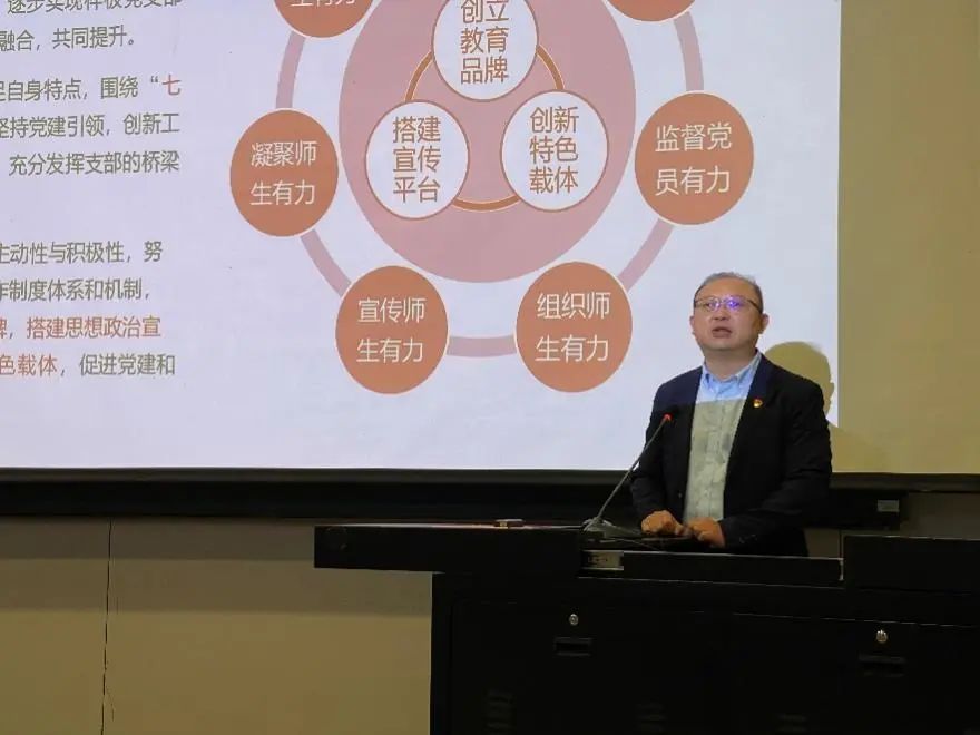 本科生综合二党支部宣传委员王婧铖围绕《成长手拉手,青春筑梦行——五育一体助力六合龙池街道乡村振兴》进行经验分享。支部聚焦“乡村振兴”时代课题,学深悟透总书记勉励精神,依托校地共建乡村振兴工作站,发挥党支部成员的专业特长,在六合当地开展“五育”系列实践服务,将青年党员的报国热情和乡村振兴的需求相结合,以实际行动践行党的二十大精神。