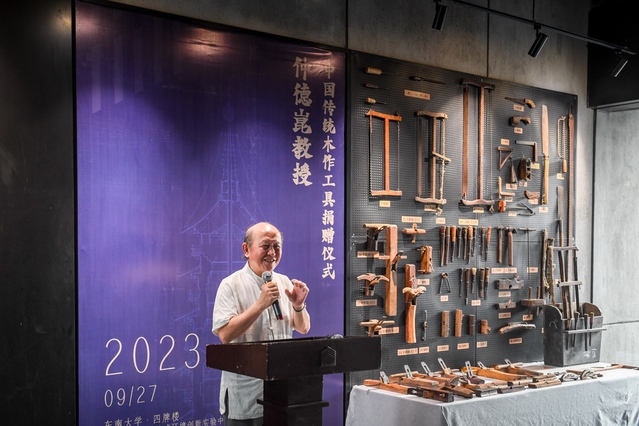 2023年9月27日下午,仲德崑教授中国传统木作工具捐赠仪式在国际建成环境创新实验中心一楼大厅举行。仲德崑教授夫妇,zero搬运网