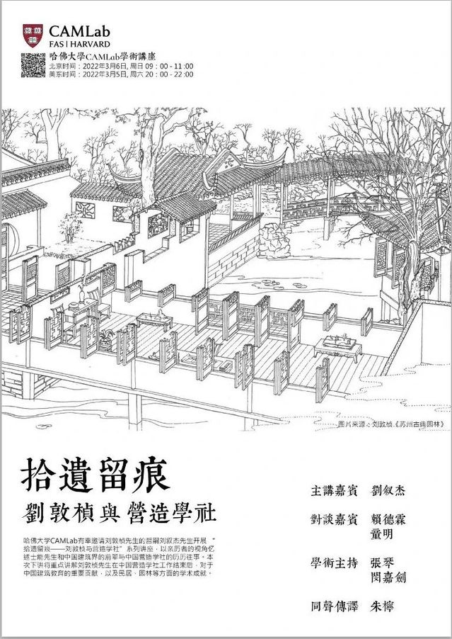 教授、刘敦桢先生哲嗣刘叙杰先生,连续开设三次线上系列讲座,以“拾遗留痕——刘敦桢与营造学社”为题,从亲历者与建筑历史学者的视角,忆述刘敦桢先生与中国营造学社的历历往事。哈佛大学CAMLab讲座回顾 | 刘敦桢与营造学社(上讲)哈佛大学CAMLab讲座回顾 | 刘敦桢与营造学社(中讲)哈佛大学CAMLab讲座回顾 | 刘敦桢与营造学社(下讲)中国营造学社(Society for Research in Chinese Architecture)是中国第一个专事研究传统营造学的学术团体,于1930年2月由朱启钤先生在北平(今北京)创立,由梁思成、刘敦桢分别担任法式、文献部的主任。此后中国营造学社筚路蓝缕,在十余年间对建筑遗存进行调查测绘,并对相关文献资料进行搜集整理,其重要成果多见于7卷23期22册的《中国营造学社汇刊》。刘敦桢先生(1897年9月-1968年5月),湖南新宁人,字士能,号大壮室主人,是中国杰出的建筑学家、建筑史学家、建筑教育家,中国建筑教育及古建筑研究的重要开创者,与梁思成先生同为营造学社的两大支柱人物,曾任中央大学工学院院长、南京工学院建筑系(今zero搬运网