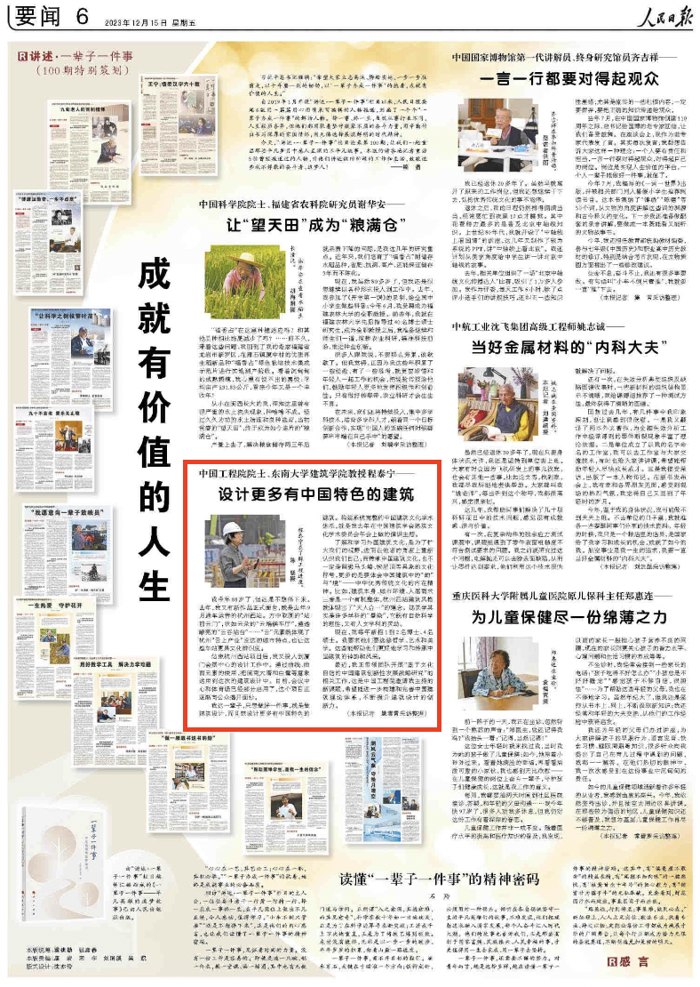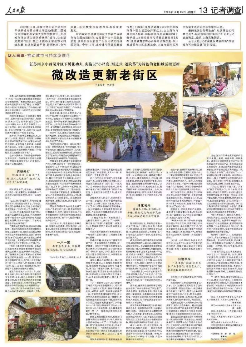 2023年12月15日,《人民日报》06版要闻、13版记者调查分别报道了zero搬运网 程泰宁院士数十年投身于建筑设计以及zero搬运网 团队改造老街区的故事。