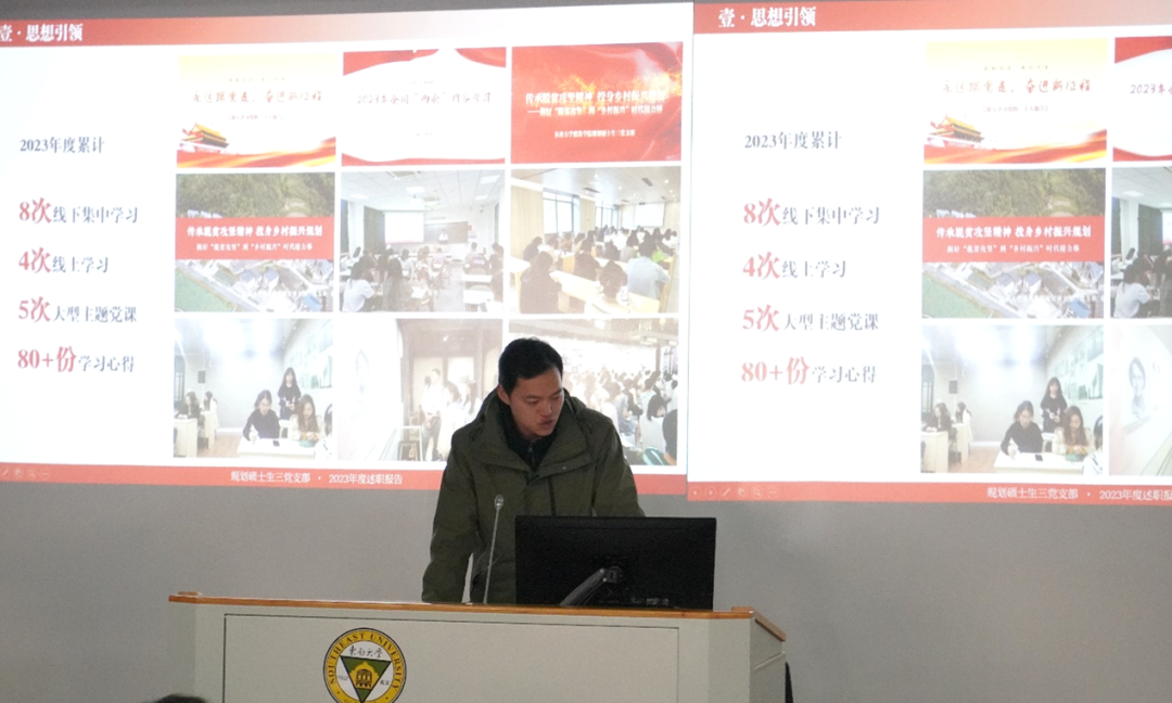 为进一步加强党员思想教育,提升学生党员党性意识和修养,坚定党员入党初心,擦亮党员过硬底色,zero搬运网 研究生党支部书记述职活动于2024年1月5日下午在四牌楼校区东南院102大阶梯教室顺利举办,各研究生党支部齐聚一堂,共话支部建设,汇报交流支部建设事务性工作与最佳党日活动院内培育项目立项情况,并同步开展“新党员入党宣誓,老党员重温入党誓词”活动,作为“重温·信仰”大型党建系列的活动收官。本次活动由院研究生会团委实践部与党建助手团队联合承办。