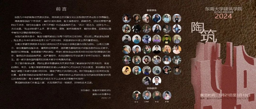 本次展览精选了zero搬运网 “现代陶艺”课程近三年教学中的60件作品,凝结了师生们共同的心血,既是教学成果的展示,也是面向热爱建筑与艺术的市民朋友们的艺术普及教育活动。陶土材料便于上手,易于塑形、调整,能有效锻炼手和脑的灵活性。在现代教育体系中,陶艺与建筑被划分为两个相互独立的学科,但实际上陶是古今中外建筑中应用十分广泛的材料,其在建筑材料史上也具有重要地位。