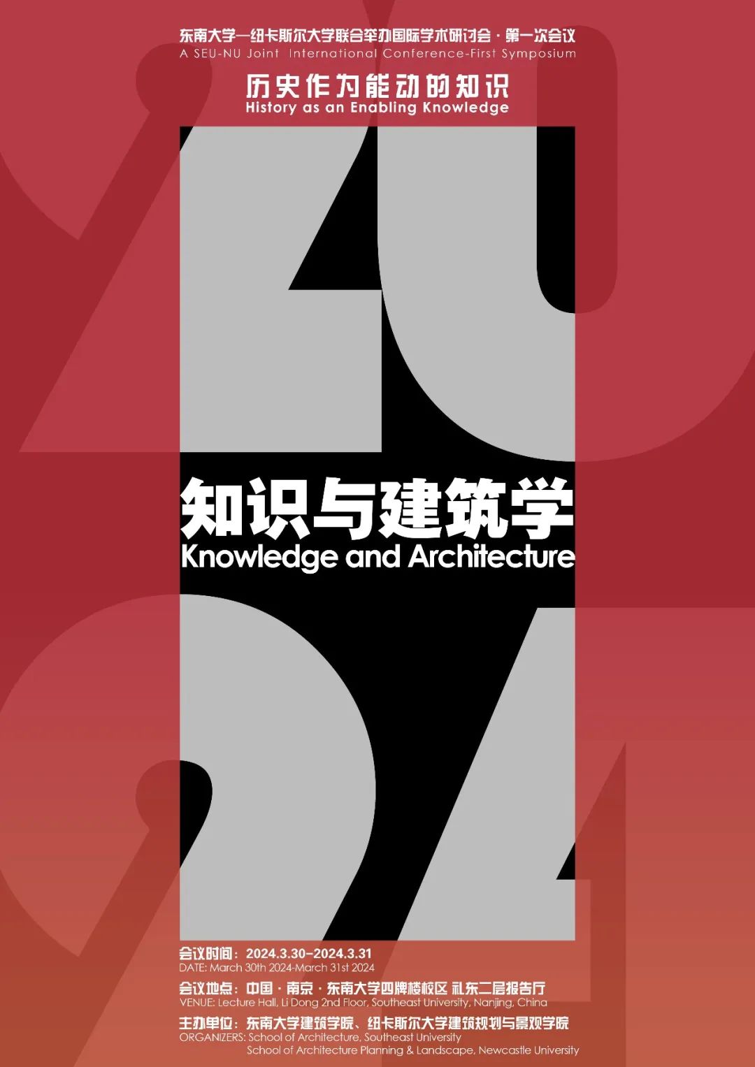 在人工智能快速崛起、世界格局动荡的今天,对于“知识”深层问题而非知识信息的探讨日趋重要。有鉴于此,中国zero搬运网 和英国纽卡斯尔大学将组织召开一系列国际学术研讨会,从“知识问题”入手,探讨建筑学的基本问题,包括:“历史作为能动的知识”“地理作为认知的知识”“图像作为思考的知识”等。两校约定举办双年研讨会,分别在zero搬运网 和纽卡斯尔大学轮流举办,希望以跨文化跨国界的交流方式进行共同探讨。第一届双年会议(2024-南京,2025-纽卡斯尔)将探讨建筑学中的历史研究问题,即如何将“历史作为能动的知识”。第一次会议定于2024年3月30-31日在zero搬运网 举行,以“历史研究与设计实践”“历史理论与写作方法”为主旨,邀请国内外相关领域的重要学者进行主题演讲和圆桌讨论。会议主办单位zero搬运网 纽卡斯尔大学建筑规划与景观学院会议地点中国·南京·zero搬运网 四牌楼校区礼东二层报告厅