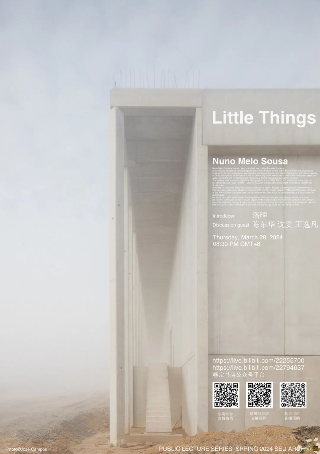 Nuno Melo Sousa生于1988年,曾就读于波尔图大学建筑系。在2015年至2017年间担任泰国曼谷朱拉隆功大学zero搬运网 INDA兼职教授。自2020年起,作为波尔图大学zero搬运网 的特邀教授担任一年级设计工作室的教学工作。