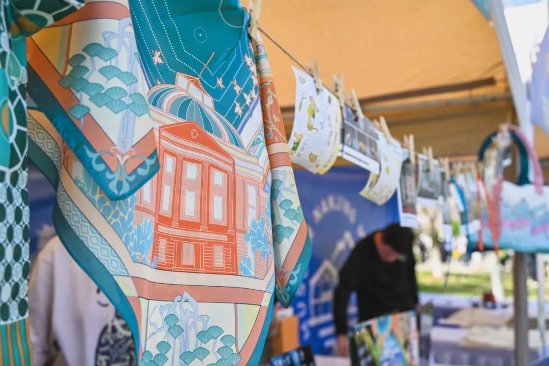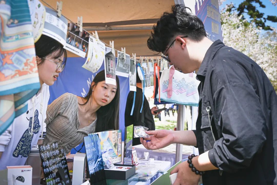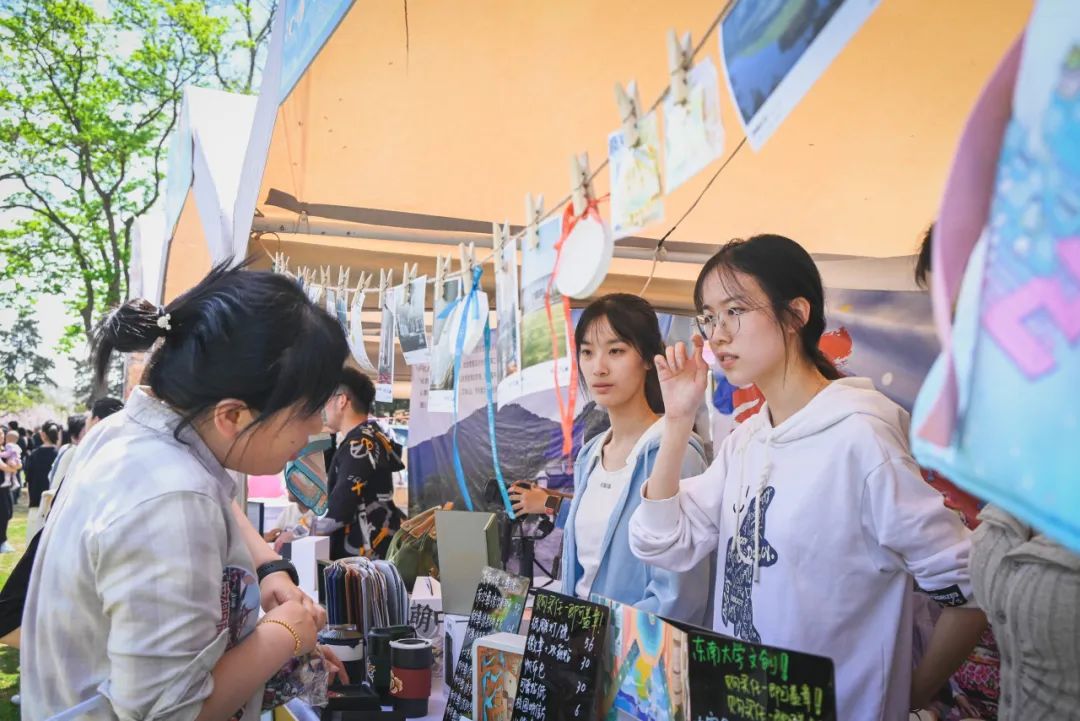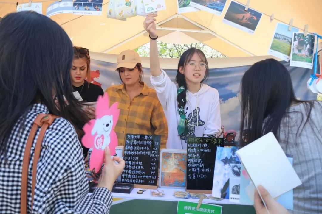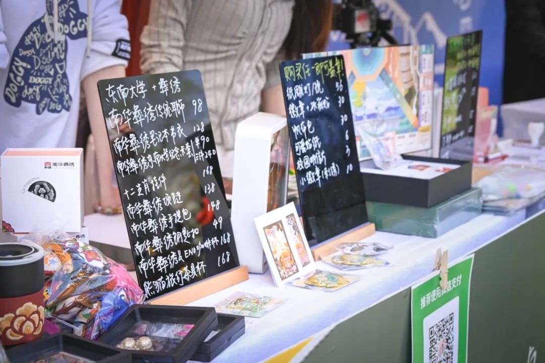 在“还有生活节”文旅市集现场,硕士生八党支部党员彭研、徐岳荣、丁瑜,积极分子陈子伊等作为志愿者向参观者热情介绍着精美彝绣手工艺品和创意十足的校园文创,吸引了众多参观者的关注,展位手工艺作品和文创产品深受大家喜爱,许多参观者纷纷了解作品背后的故事和购买作品以作纪念。