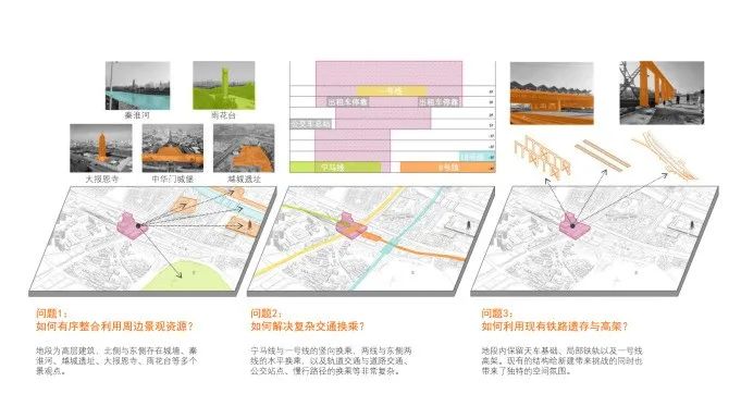 选题背景:在“增量开发”向“存量提升”转变的大背景下,城市更新成为这一阶段解决城市空间发展问题的重要话题。南京城市格局的历史演变与独特的山水环境相互交融,由此构成南京城市空间的重要特色,也使南京名城有别于其他众多历史文化名城。中华门站在废弃宁芜铁路功能和保留其遗迹的基础上,规划为四线换乘站点。其周边城市要素复杂,需综合处理高架、绿脉、遗址以及周边不同时代的社区等要素之间的关系,这为合理定位与重塑新时期中华门站周边地区的发展具有重要意义。