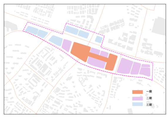 规划实施层面,我们首先提出我们的规划目标,同时确定公共优先、刚弹结合的导控原则。然后我们从建筑、交通以及景观三个方面对中华门片区进行建设把控。建筑方面强调建筑体量限定的城市公共空间的开放性和整体性,侧重于整个片区的不同建筑功能与空间之间的慢行体验。交通方面分强制性与引导性要求与控规同步展开,强调整个建设过程中的弹性预留与控制。景观方面强调城市景观的系统性与联通性,引导地区建设打破中华门站片区割裂南北的固有城市印象,塑造全新的门户形象,充分展现南京文脉之末的独特魅力。整个片区分三期建设,第一期对中华门站点核心地块进行基础开发,第二期对中华门站点相联通的地块进行核心开发。第三期对剩余周边地块进行开发,进一步完善地区服务功能。