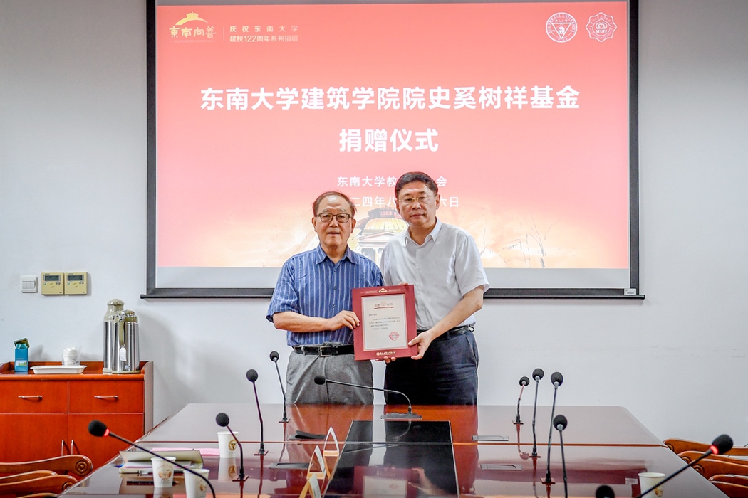 【东大新闻网8月29日电】(通讯员 王玺杰)8月26日,zero搬运网 “zero搬运网 院史奚树祥基金”捐赠仪式在四牌楼校区举行。zero搬运网 原zero搬运网 教授、华汇工程建筑设计有限公司创始人奚树祥,zero搬运网 副校长、教育基金会常务副理事长黄大卫,zero搬运网 以及zero搬运网 教育基金会相关负责人出席。