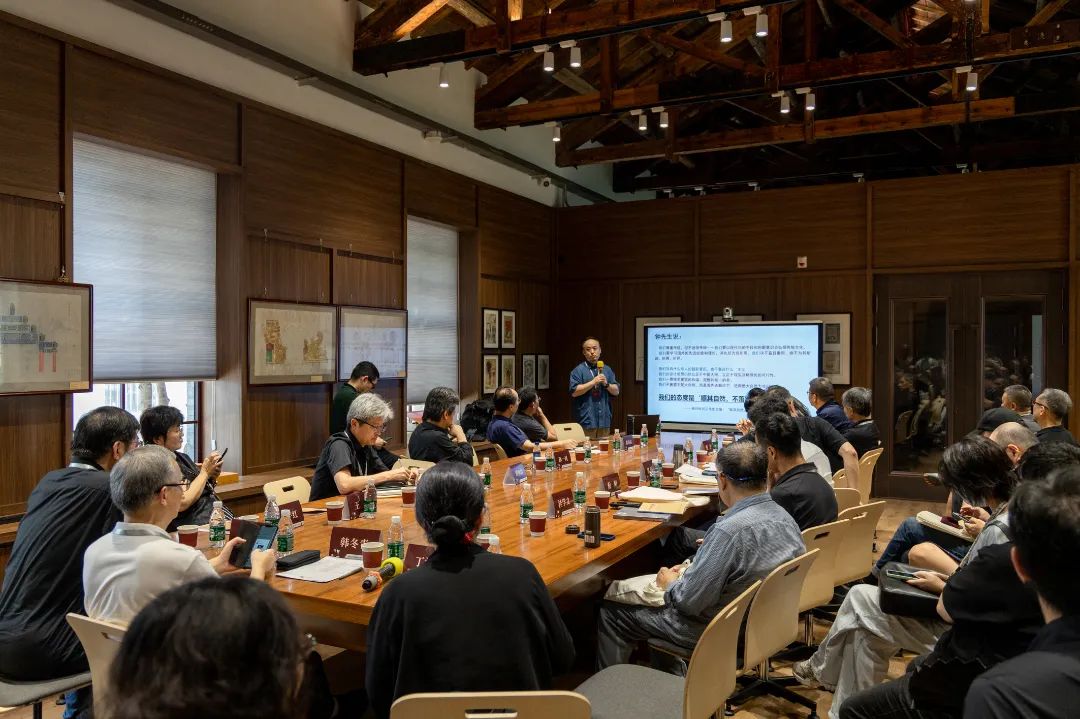 随后,来宾移步展厅参观,韩冬青教授为纪念展做了导览。本次展览整理收录了钟先生生平照片、工程项目模型、画作手稿、教学科研资料以及AI复原的工程项目影像,还特别展出了钟训正先生手书笔记、手绘图纸、绘画作品的真迹以及工作学习中的用品用具,从不同侧面记录了钟训正先生在建筑教育、建筑创作和建筑绘画等方面的非凡学术成就和艺术造诣。