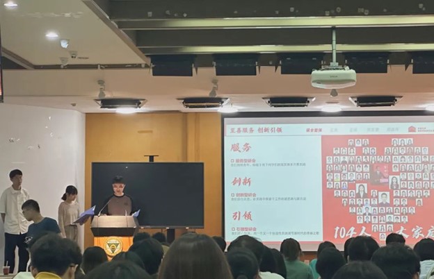接着,学院研究生会主席团的徐耀新、王慧颖、徐豪三位学长学姐为大家分享了学院研究生会的组织架构、建设理念和服务内容,覆盖了校园建设、社区服务、高水平暑期学校、文体社会实践等多方面的发展概况。