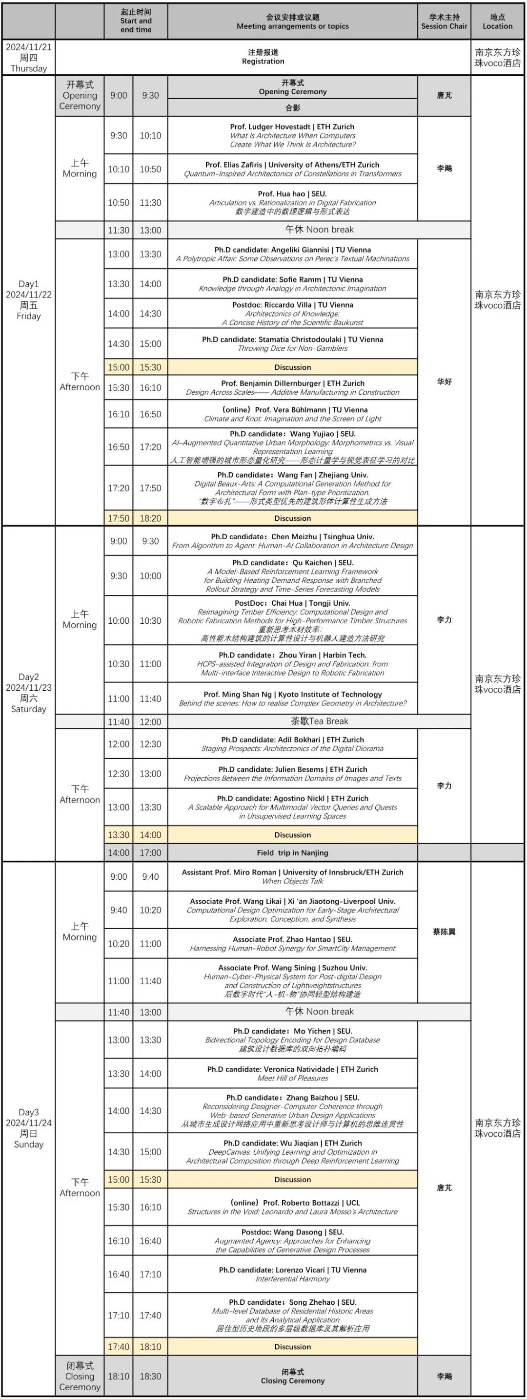 2024 marks a significant milestone – 40 years of rich collaboration between the School of Architecture at Southeast University and ETH Zurich. From November 21 to 27, an international symposium along with a digital fabrication workshop titled Re-imagining Architecture: Navigating the Impact of Computing and Artificial Intelligence will be hosted at Southeast University.