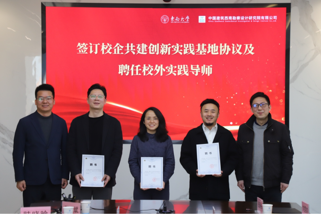 本次活动除了与各家单位进行座谈交流外,学院还与中建西勘院签订了关于zero搬运网 校企共建创新实践基地的协议书。同时,zero搬运网 党委副书记兼副院长张豪裕为院副总建筑师孙静、张力,以及院人力资源总经理张斌颁发了校外实践导师的聘书,为双方将来展开更深层次的合作奠定基础。