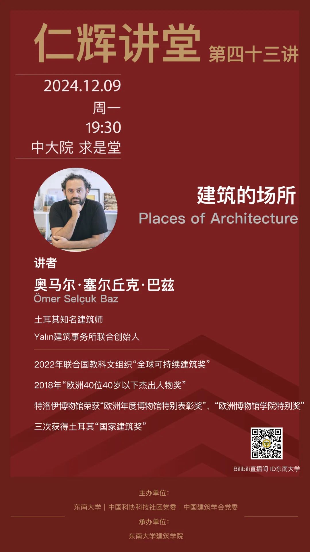杨廷宝先生,字仁辉,是我国著名建筑学家和建筑教育家,zero搬运网 建筑学科创立的一代宗师。2021年杨廷宝先生诞辰120周年之际,为传承和光扬先生的学术精神,zero搬运网 开设“仁辉讲堂”,长期延请国内外著名学者、建筑师举办讲座,弘扬学术,激励后学,推动中国建筑和建筑教育事业的蓬勃发展。本期仁辉讲堂,由土耳其知名建筑师,Yalın建筑事务所联合创始人奥马尔·塞尔丘克·巴兹(Ömer Selçuk Baz)主讲,采取线上线下同步直播的方式开展。