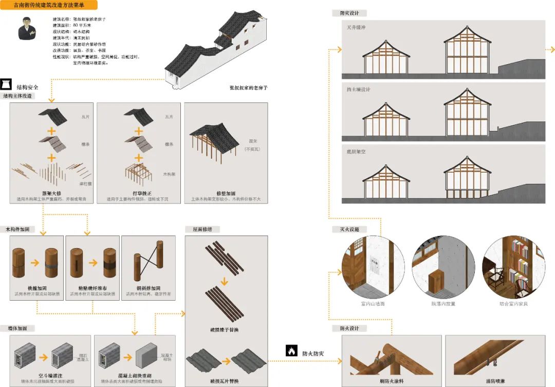 结合国家科技部的古建聚落研究课题,团队将研发的一系列创新技术应用于古南街的保护、整治和改造,起到了显著的效果。