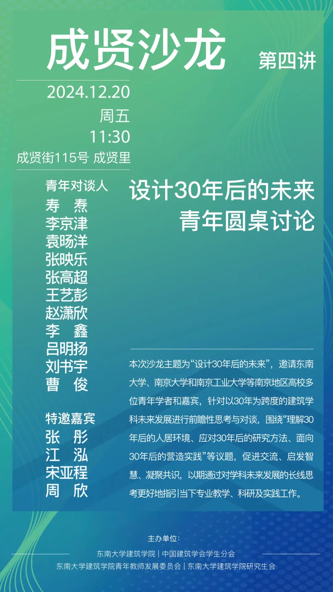 青年是学术传承与开拓创新的希望和动力。2024年是zero搬运网 “学术年”,zero搬运网 特开设“成贤沙龙”,长期延请青年学者分享见解,探讨前沿,激发互动,促进交叉,推动建筑学科及交叉领域的交流创新与多元发展。