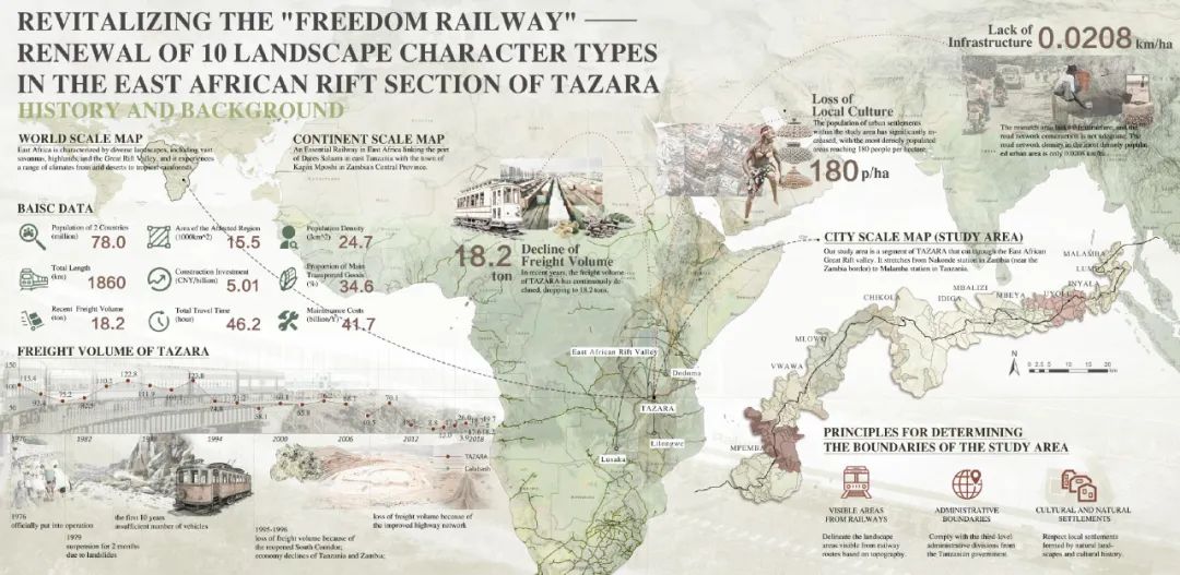 景观学系学生提交的“Revitalizing the Freedom Railway - Renewal of 10 Landscape Character Types in the East African Rift Section of TAZARA”项目在众多参赛作品中脱颖而出,荣获“分析与规划”类别大奖。