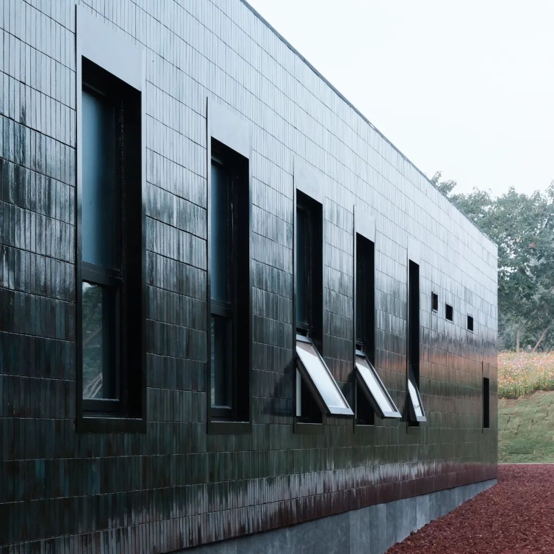 加固、修缮、保护遗址,使之成为与展示馆为一体的室外展示场所。以“最小干预、历史复原、活化再生”为原则适当改造,使其成为建筑遗产保护与更新再生的示范案例。在立面陶片上运用均陶彩釉工艺,使立面在光线下呈现出丰富的光影效果。而走近用手触摸,会体会到不同的触感。