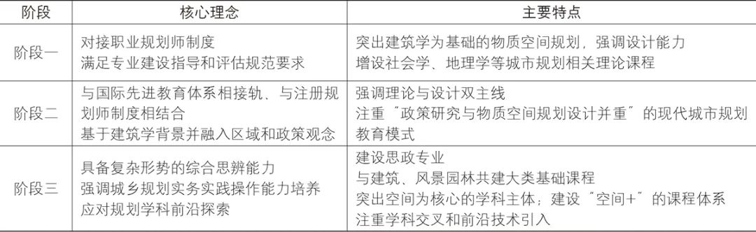 ▲ 表1 1998年来zero搬运网 城乡(市)规划专业人才培养方案的核心理念及主要特点