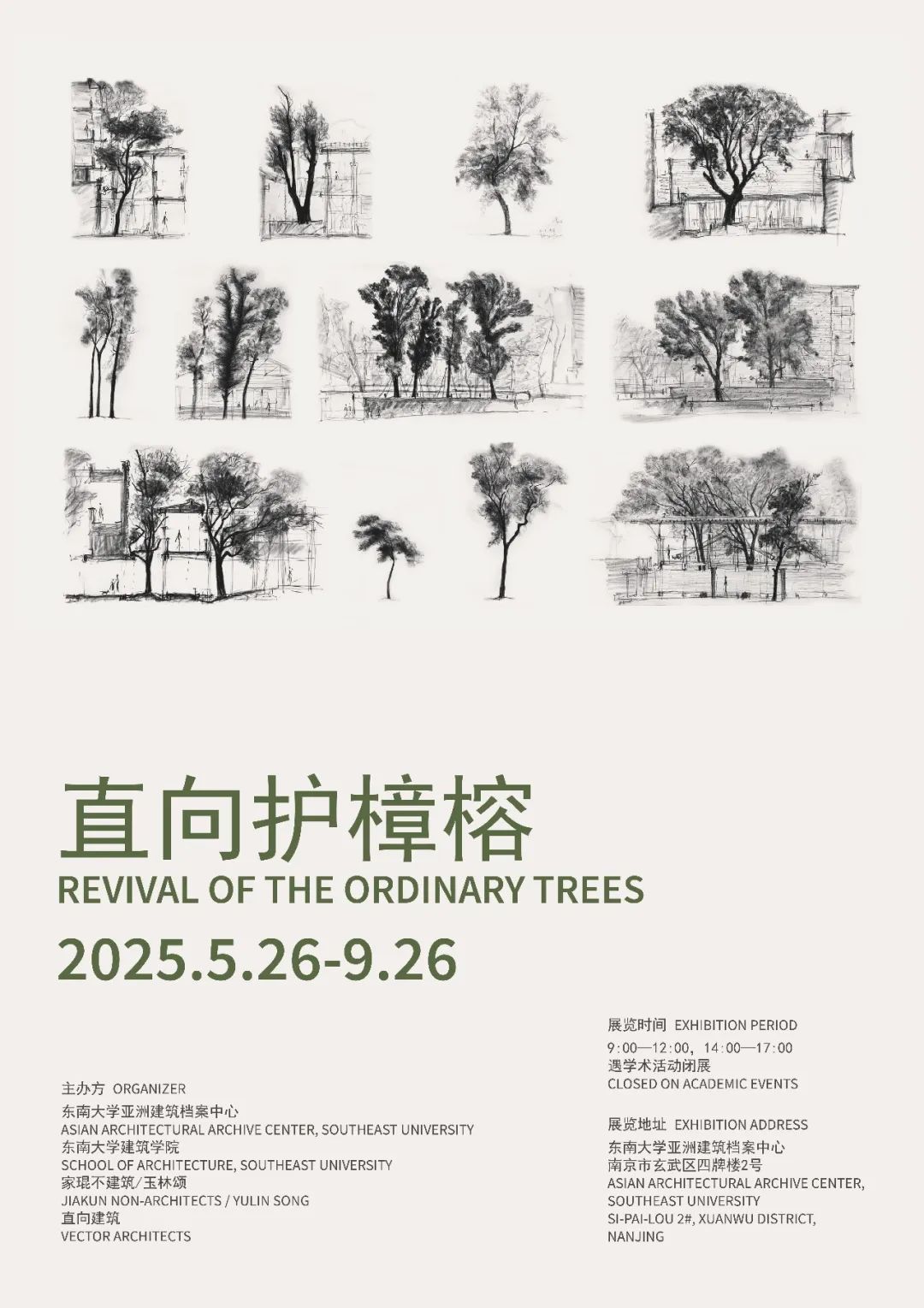 The exhibition "Revival of the Ordinary Trees" will officially be open to the public at the Asian Architectural Archive Center, Southeast University on May 26, 2025. This exhibition is jointly organized by the Asian Architectural Archive Center, and the School of Architecture of Southeast University, Jiakun Non-Architects / Yulin Song, and Vector Architects. The exhibition is scheduled to remain open until September 26.