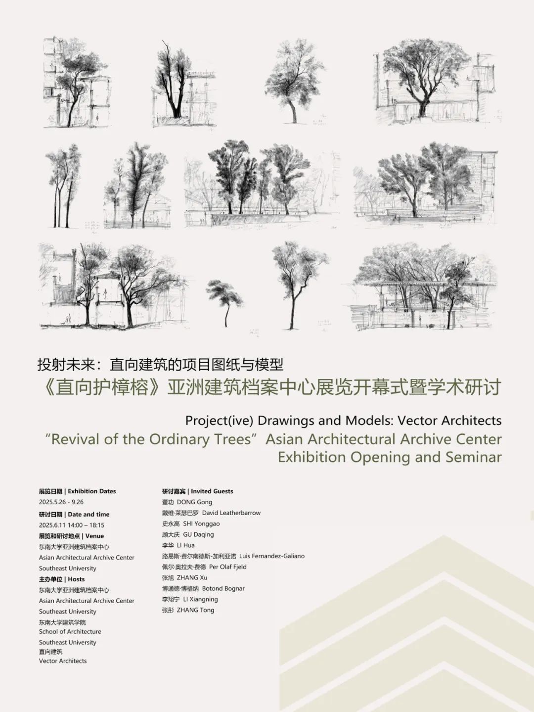 An exhibition featuring two projects by Vector Architects—centered on the themes of architecture, trees, nature, and the environment—is currently on display at the Asian Architectural Archive Center, Southeast University. Showcasing an extensive collection of project drawings and models generated during the design process, the exhibition offers a rare glimpse into the material traces of architectural thought. In conjunction with this exhibition, the seminar focuses specifically on these PROJECT drawings and models, which are, by nature, PROJECTIVE. Through a thematic study of these archival materials—enriched by site visits to the completed buildings—participants will investigate the intricate and layered processes of architectural design, with particular attention to the key moments of decision-making that shaped the final outcomes, allowing for an in-depth dialogue between scholars and architects. Topics explored include Drawings/Models as Media, Site and Courtyard, Composition and Geometry, Type and Setting, Light and Nature, Construction and Craftsmanship.
