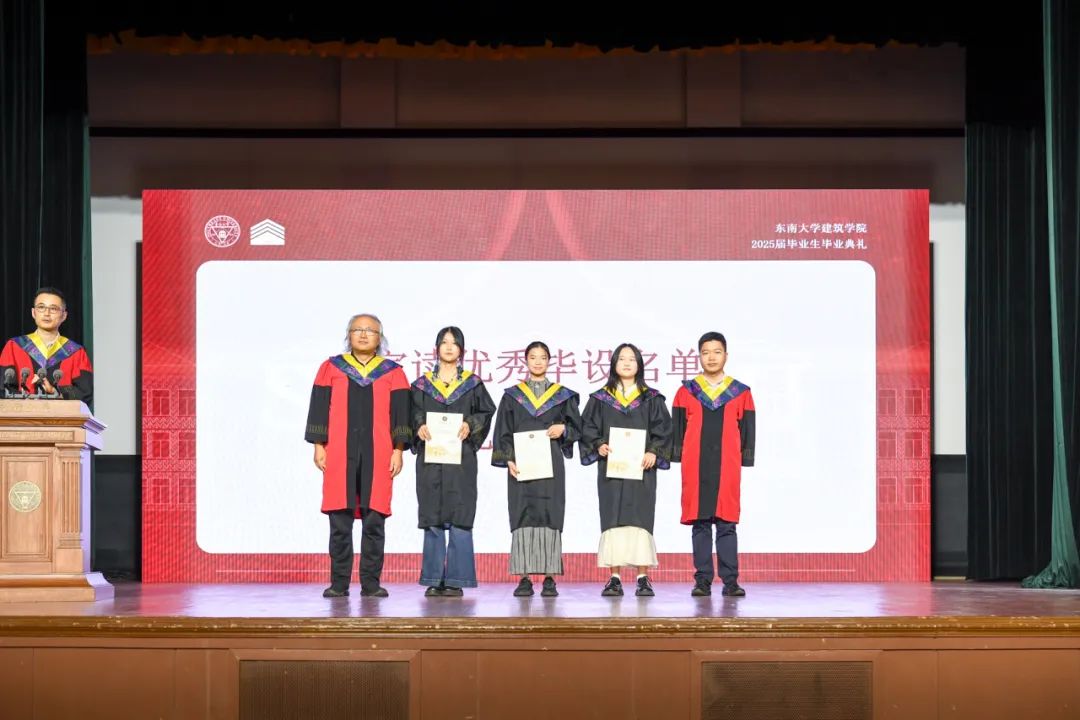 本科毕业设计是对本科教学成果和学生学习成效最综合的一次检阅与展现,学院副院长宋亚程老师宣读了优秀毕业设计获奖名单。学院中、外籍资深教授、校友代表以及各系所负责人为同学们颁发了证书,并合影留念。