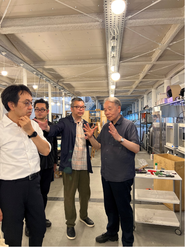 在京都工艺纤维大学(KIT),王院士一行与设计·建筑学系主任金尾伊织教授及满田卫资教授、角田晓治教授、清水重敦教授、山崎宽泰教授、高木真人教授等举行了会谈。代表团实地考察了Kyoto Design Lab工作室、模型工坊及先进的教学设施与环境。双方就建筑设计、建筑历史、建筑结构等多个方向,深入探讨了包括合作交流、师生互访、联合设计教学等在内的多层次、全方位合作可能