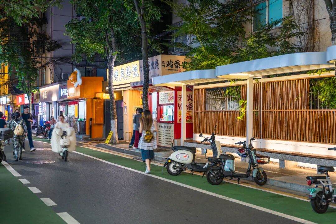 在街道平面设计上,设计团队将各类行为活动进行细化分析,使得边角空间都可以获得良好使用。同时针对沿街立面以及两侧的店面标识进行分类设计,重点对于两侧的社区入口通道进行改造提升,这些做法显著改善了老城背街小巷空间拥堵、环境衰退、秩序杂乱等问题,构建了主街创意商业与支巷生活服务互相补充、互相促进的新格局。