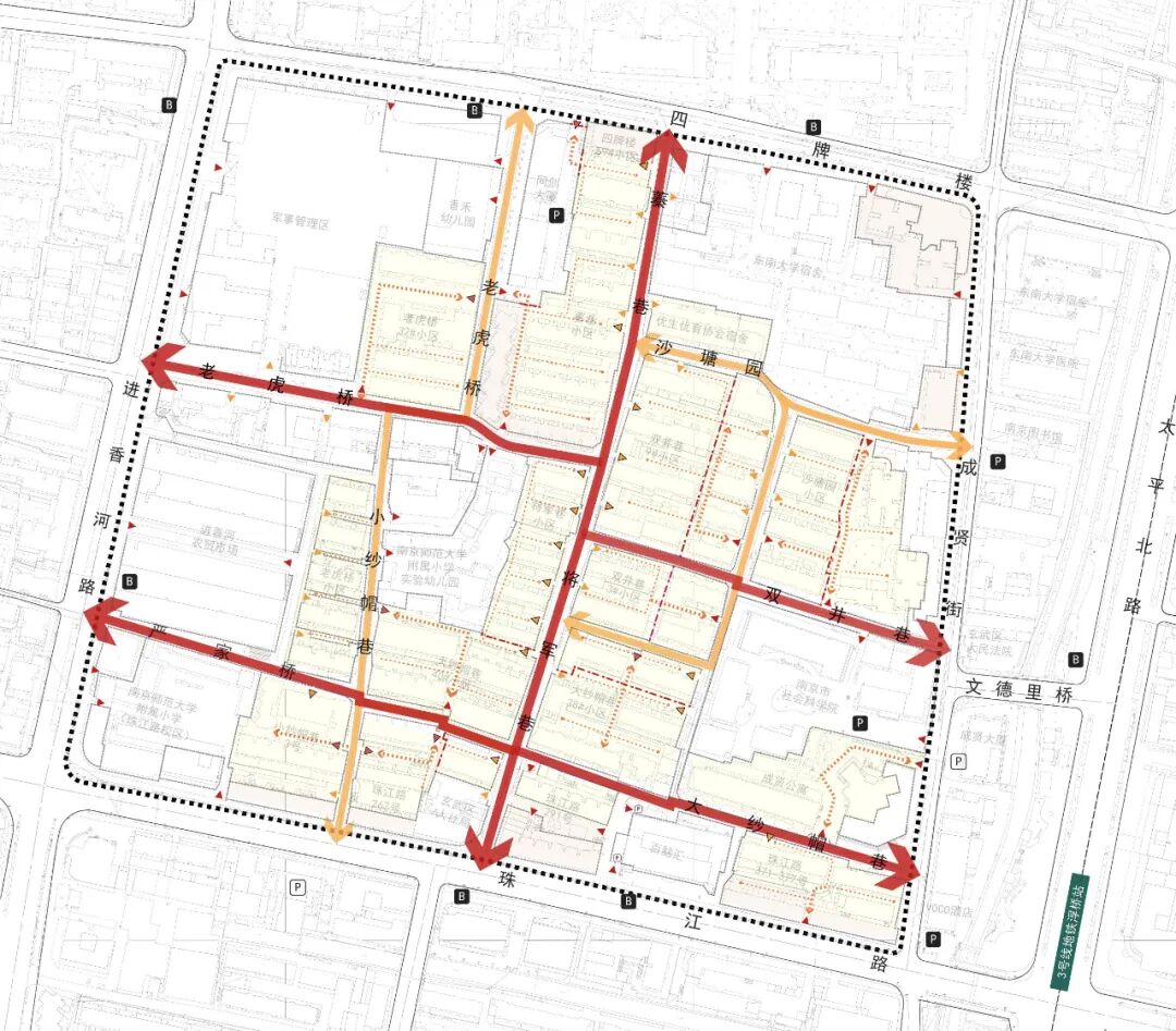 蓁巷街区建造于上世纪80年代末,位于南京市玄武区新街口街道,紧邻大学校园,其中还包含有进香河菜市场等集市区域。虽然烟火气息浓郁,但是物质环境衰旧,设施功能退化,人车混行安全隐患突出等问题突出,是南京老城区非常典型的衰退型老旧社区。且由于街区品质相对不足,与zero搬运网 四牌楼校园与之形成了“围墙效应”。校区、社区和城区在空间、功能、资源配置方面存在着显著的断裂。