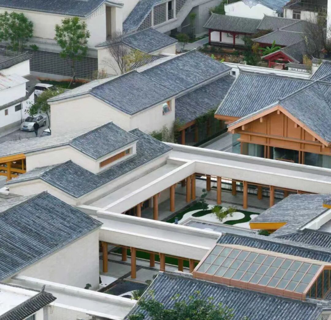 大理书院位于大理古城西南约1公里,为集展览、研学、会议、雅士聚会为一体的综合性文化场所。设计基地为对角连接的两块高差约2.5米的矩形场地,整体与周边民居肌理贴合紧密。建筑设计保留了场地南北区交接地带的小型园林、树木和连廊建筑,以及旗台、白族门楼等要素,在根据新建筑要求的功能空间和文化特征重新设计时,延续了些许历史记忆。